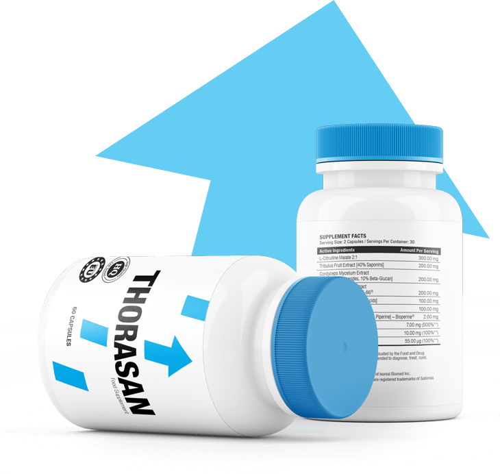 Il testosterone è l'ormone trainante dell'uomo. Lo zinco e il selenio contenuti in Thorasan aiutano ad aumentare i livelli di testosterone fino a raggiungere livelli ottimali.